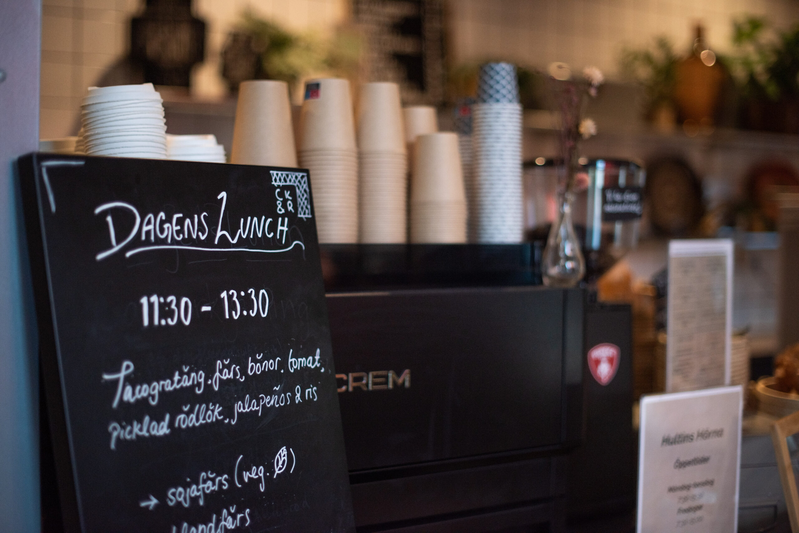 Rykande färskt kaffe och goda mackor serveras alla vardagar på Hultins Hörna. Utöver det finns även hembakt och varm lunch.