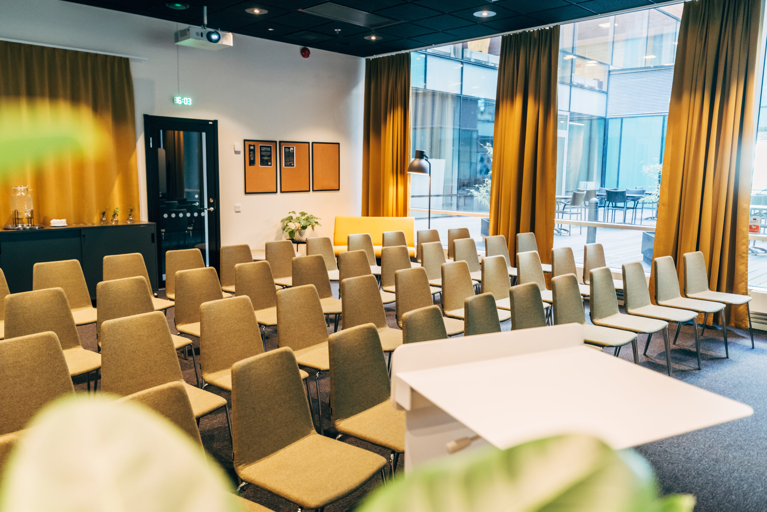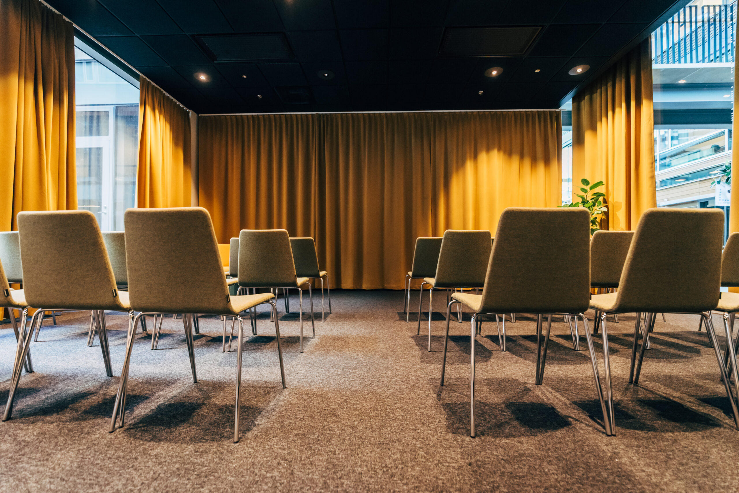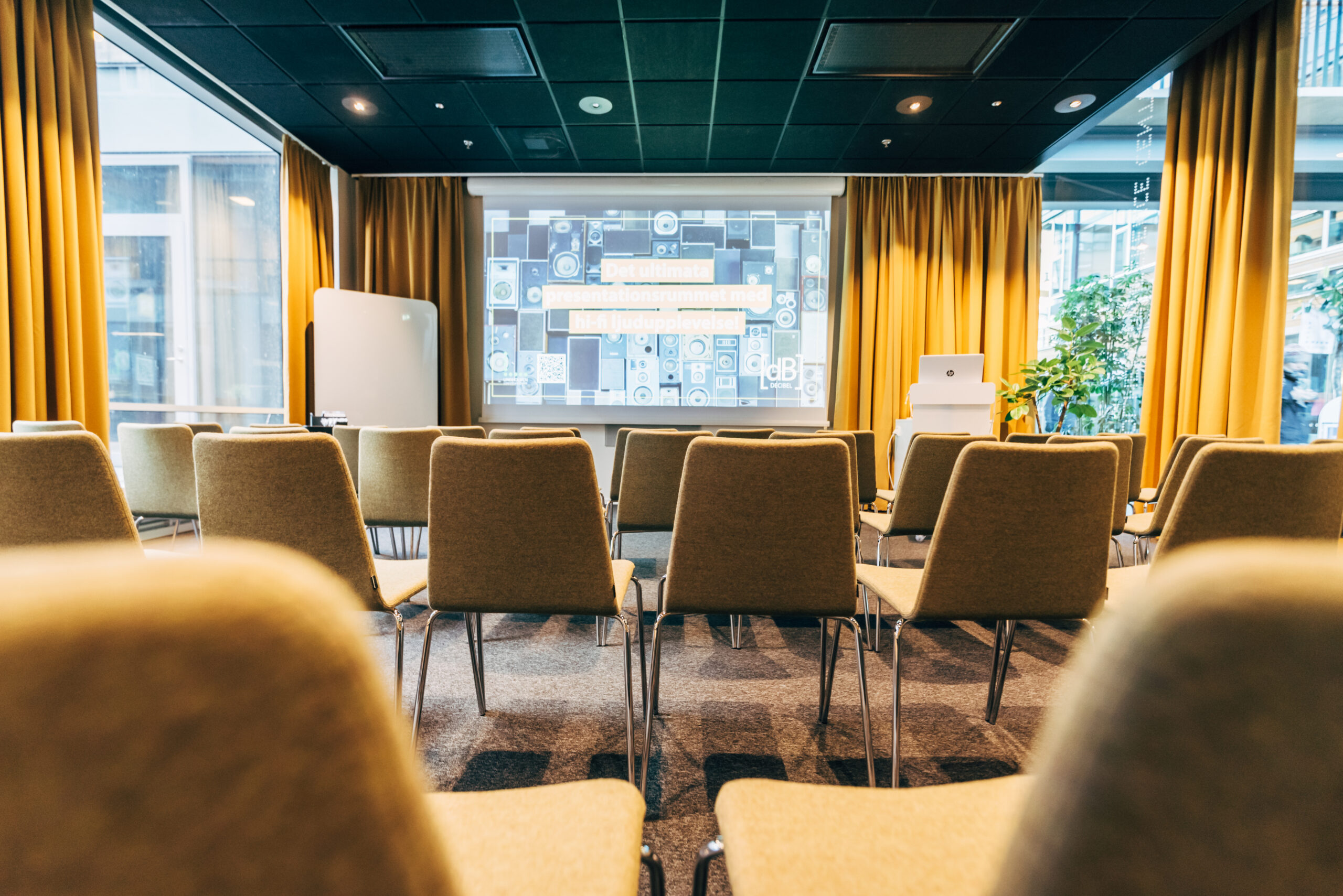 Decibel är ett flexibelt presentationsrum med behagliga färger och textilier.